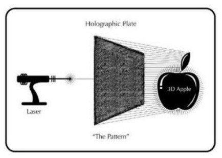 Jakaś wiązka referencyjna– jeszcze nie wiemy jaka – jest kierowana na Pole, które jest jak gigantyczny kawałek holograficznej błony, która zawiera już wszystkie częstotliwości fal wymagane dla nieskończonej liczby hologramów; i wyskakuje „rzeczywistość”.
