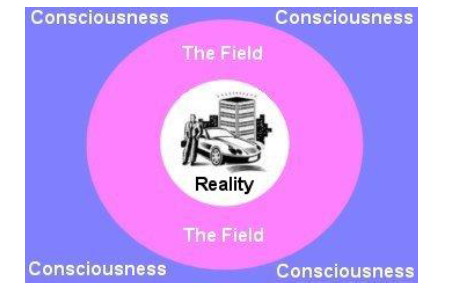 Oczywiście ten proces nie jest dwuwymiarowy ani liniowy, jak pokazano na tym obrazku. Bardziej realistycznym przedstawieniem mogą być trójwymiarowe koncentryczne okręgi, z „rzeczywistością” pośrodku, Polem wokół niego i świadomością wokół Pola.