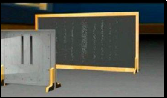 Tak więc, kiedy wysyłamy „cząstki materii”, takie jak kulki, przez dwie szczeliny, otrzymujemy na ekranie dwa określone wzory, które wyglądają jak szczeliny, przez które przeszły. Kiedy wysyłamy „fale” przez dwie szczeliny, na ekranie otrzymujemy wzór interferencyjny.