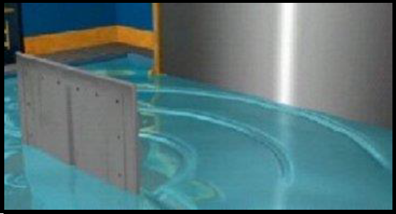 Kiedy woda przepływa przez obie szczeliny, nowe fale utworzone przez szczeliny po drugiej stronie bariery uderzają o siebie po drodze do ekranu.